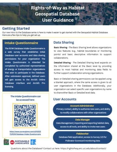 Users can also complete the Pollinator Habitat Assessment Protocol electronically through the Survey123 app. The app streamlines data collection and reporting by syncing habitat data and photos with the Rights-of-Way as Habitat Geospatial Database. Find additional information under Resources